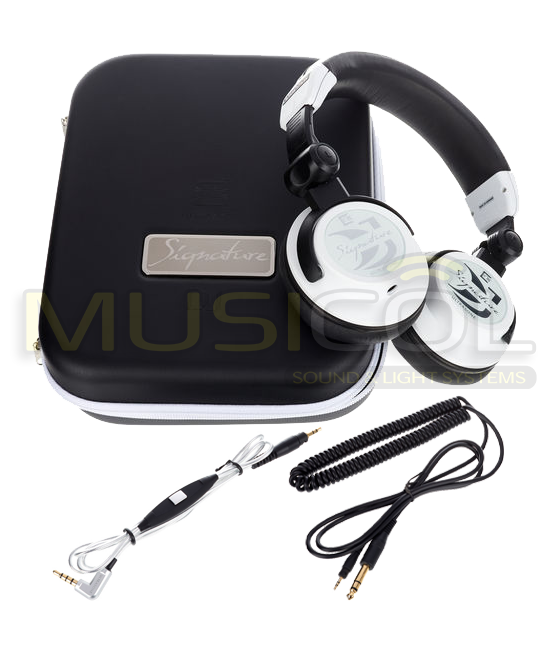 DJ Signature הוא האוזניות המתקדמות עבור תקליטנים מקצועיים. האוזניות המיוחדות החזקות במיוחד מיוצרות בעבודת יד במפעל. עם דרייבר המילאר שנבחר ביד 50 מילימטר עם עכבה של 32 אוהם ורמת לחץ קול של 115 dB, הוא מציע רפרודוקציה מרבית ללא עיוותים לשליטה הטובה ביותר על הסט במהלך הביצוע. תשומת לב מיוחדת מוקדשת לביצוע איכותי בשילוב עם רכיבים עמידים ומוצקים במיוחד. מבטיח נוחות לבישה מעולה והתאמה אישית עם מוצקות מרבית לשימוש. בערכה כבל ספירלה 3 מטר עם מחבר 6.3 מ”מ Neutrik PL + כבל ישר 1.2 מטר ועליו שלט ומיקרופון, מחבר 3.5 מ”מ Neutrik PL ותיק נשיאה איכותי.
