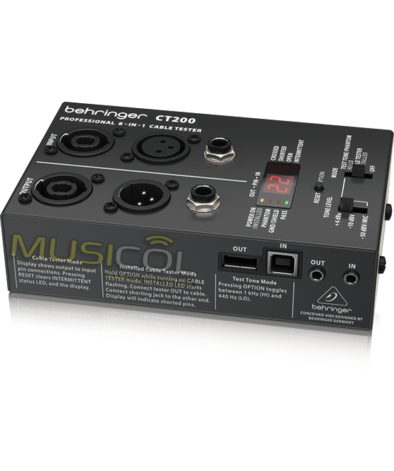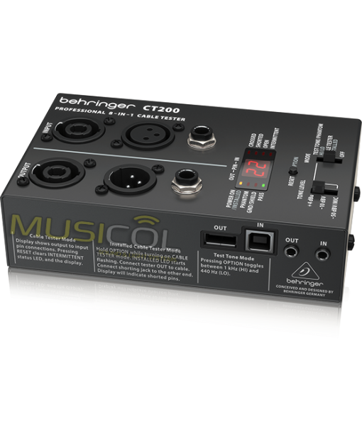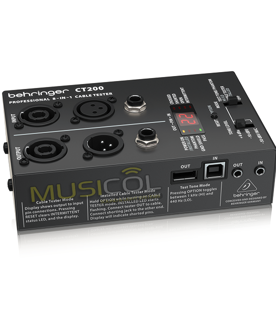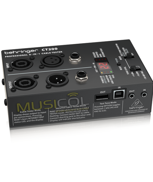 ה-CT200 יוודא שכל כבל בארסנל שלכם תקין עם בודק הכבלים. חובה עבור כל מהנדסי סאונד ומוזיקאים. בודק כבלים בשליטת המעבד הכולל 3 מצבים: בודק כבל וכבלים מותקנים בתוספת מצב צליל בדיקה. מקבל את כל המחברים הסטנדרטיים: XLR, Speakon *, TRS (1/4 “, 1/8”), RCA, RJ45, MIDI ו- USB.