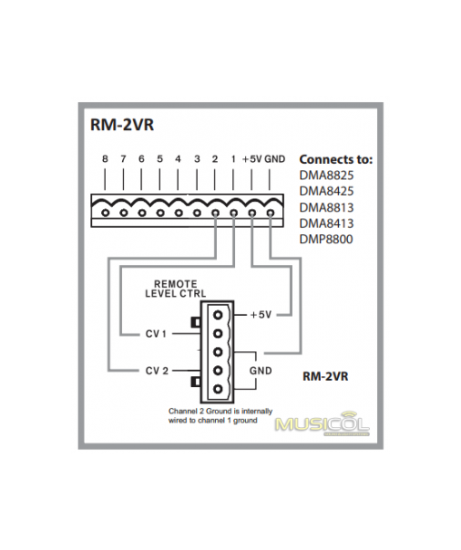 ה- RM-2 הינו יחידת בקר עוצמה לשני ערוצים המותאם למיקסר איזורים DM434. הבקר מתחבר למיקסר האיזורים באמצעות כבל רשת סטנדרטי ויכול לשלוט בעוצמה היציאה של שני איזורים. ביחידת ה-DM434 ישנם 2 כניסות לבקרת עוצמה כניסה ראשונה שולטת בעוצמה של יציאות 1-2 ואילו כניסה השניה שולטת ביציאות 3-4.