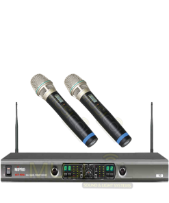 2 מיקרופונים אלחוטיים ידניים עשויים מגוף יציקת פלסטיק מחוזק, מסך LCD המציג את הגרופ וערוץ התדר בו הו נמצא ומצב סוללה קפסולה דינמית, משדר בעוצמה של 30Mw בגוף המיקרופון מתג הפעלה עם מסנן רעשים בהדלקה וכיבוי, פועל עם 2 סוללות 1.5V AA מגיע עם מספר טבעות צבע להבדלה בין מיקרופונים אחרים.