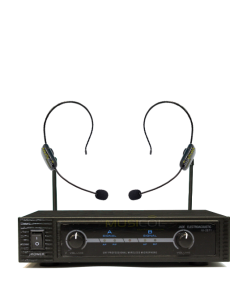 סט זוג מיקרופונים אלחוטיים עם מיקרופון ראש (מדונה) ועליו מותקן המשדר ( ללא כבל ) בשידור UHF עם טווח קליטה של כ- 60 מטר, תדר קבוע ויציב, אנטנה לשיפור איכות הקליטה. במיקרופון מתג הדלקה כיבוי והשתקה. קפסולה דינאמית ואיכותית