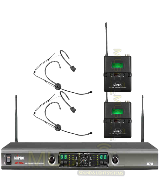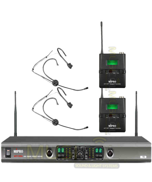MIPRO ACT-100A-MM כולל 2 משדרי חגורה + 2 מיקרופונים מדונה בצבע גוף (ב’ז) או שחור