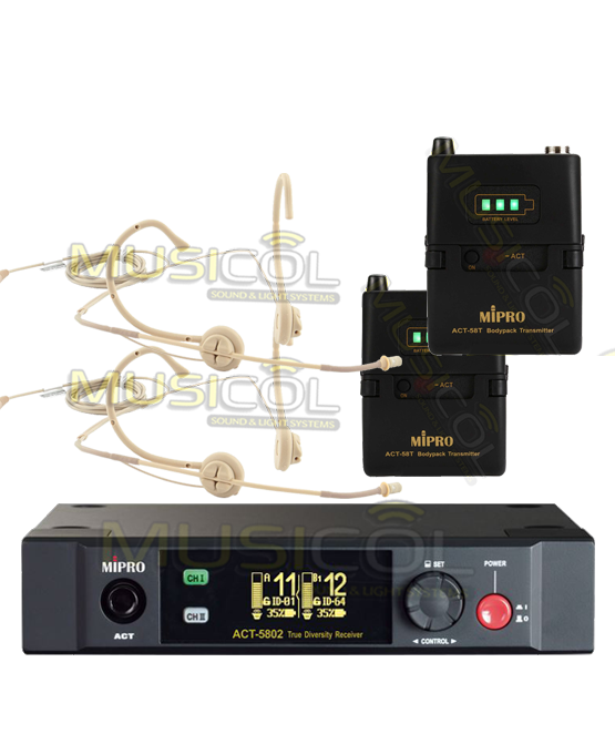 זוג מיקרופונים אלחוטיים משדר חגורה ומדונה MIPRO ACT-5802-TM 5.8GHz