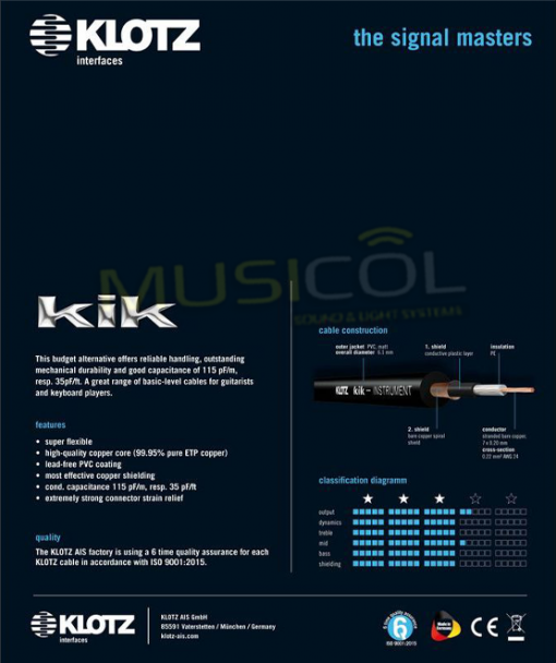 כבל לכלי נגינה PL – PL באורך 4.5 מטר KLOTZKIK4.5PPSW