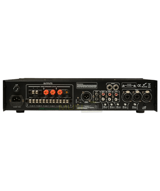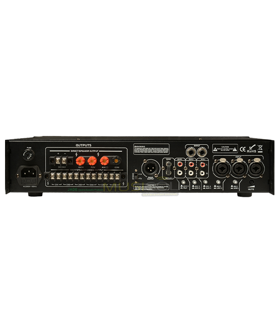 המגבר בהספק של 180W עם שנאי קו מובנה ב-70V ו-100V או יציאה בהתנגדות של 4Ω-16Ω שנועד לשימוש כמגבר כריזה בחרום. פועל על חשמל וגיבוי של מצבר 24VDC (המצבר לא כלול במחיר), למגבר 6 יציאות עם שליטת עוצמה לכל איזור, היכולים לשמש למספר איזורים (כל יציאה 30W) ובנוסף יש יציאה ישירה בהספק מלא של כל ה-180W. נגן MP3 מובנה הכולל מסך LCD ולחצני שליטה, 5 כניסות מיקרופון כשכניסה מספר 1 משמשת לחרום עם פריוריטי TALK OVER שתשתיק כל מה שמושמע וישמעו רק את המיקרופון, 3 כניסות סטריאו ושתי כניסות LINE. יציאת קדם מגבר לחיבור לשרשור מגברים נוספים, וסת עוצמה לכל כניסה, וסת עוצמה ראשי ו-2 ווסתי טונים גבוהים ונמוכים. חיבור סוללת גיבוי עם טעינת זליגה.