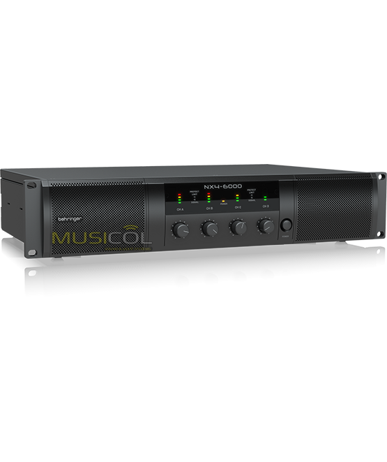 ה-NX4-6000 הינו מגבר 4 ערוצים בהספק של 440W ב-8 אוהם, 860W ב-4 אוהם ו-1500W ב-2 אוהם ובנוי בטכנולוגיית דיגיטלית (Class-D) המספק כוח וביצועים קוליים טובים וקל משקל לשימוש נייד. מגבר דיגיטלי עושה את ההבדל, ומציעה את יעילות האנרגיה האולטימטיבית – ומבטל את הצורך באספקת חשמל כבדה וקירור חום מסיבי. הטכנולוגיה המדהימה הזו מאפשרת לעצב ולבנות מוצרים חזקים במיוחד שמשקלם קל משמעותי בהשוואה למגברים המסורתיים, תוך שימוש בפחות אנרגיה והגנה על הסביבה.הפקדים והמחוונים של הלוח הקדמי מספקים במבט אחד את הסימנים החיוניים של המערכת. לאחר לחיצה על כפתור ההפעלה, נורית ה- Power נדלקת כדי להראות שהמגבר מוכן לפעולה. כל הערוצים כוללים בקרות השגחה “Signal” עם נוריות LED שנדלקות כאשר קיים אות, וכן נוריות “Limit” המציינות כי המגבר פועל במלוא הקיבולת, נוריות “Protect” המסמנות על בעיה במגבר ותכבה אותו לשמירה על הרמקולים. 2 ווסתי עוצמה נגישים ומדוייקים. בפאנל האחורי נמצאים מחברים מאוזנים קומבו XLR/6.3MM לכניסה האודיו, 4 שקעי יציאה לרמקולים עם נעילה “Speakon”. מתגי בחירת מצבי עבודה סטריאו / מונו / מונו גשר ומתג “קרוסובר” בעל 3 מצבים של ה- NX4-6000 מכוון את המגבר למצב טווח מלא “Full range”, שם נשלחים כל התדרים ללא סינון לרמקולים, מצב חיתוך (low frequency) מצב בו המגבר שולח לרמקולים רק את התדרים הנמוכים (עד 100 הרץ) מתאים למצב של שימוש בסאב וופרים פסיביים, ובעצם מונע את הצורך בקרוסובר או פרוססור חיצוני ומצב חיתוך שלישי (High Frequency) מצב בו המגבר שולח את כל התדרים מעל 100Hz. הגנה עצמאית על עומס יתר תרמי, קצר, יציאת מתח DC והפרעות רדיו, בכל ערוץ מגן אוטומטית על המגבר והרמקולים. המגבר שמותאם להתקנה בארון מגברים / תקשורת וגובהו 2U