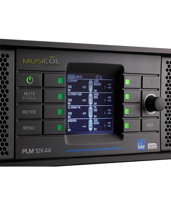 בהתבסס על סדרת PLM + הנמכרת ביותר, PLM 12K44 מציע עד 4 יציאות של 4600 וואט הספק ליציאה, מספר רב של עיבודיפרוססור ושלל תכונות נוספות שנועדו לספק יתרונות בעולם האמיתי. תכונות כגון: עיבוד אותות דיגיטליים LAKE; רשת אודיו דיגיטלית של Dante; בתוספת טכנולוגיית ניהול כוח רציונלי (RPM), חידוש המייצב את הקצאת הכוח בין הערוצים לצורך ביצועים אופטימליים. כמו בדורות קודמים, ה- PLM 12K44 מספק כניסות שמע גדושות וניטור עומסים, בתוספת ביצועים רב-ערוציים המוסיפים גמישות בכל כמות הרמקולים של המשתמש. ה- LAKE DSP המובנה מבטיח את שלמות האות האולטימטיבית בטווח דינמי רחב במיוחד (> 112 dB). שלב היציאה IDEEA המוכח והאמין מלווה באספקת חשמל מתקדמת המספקת תיקון פקטור (PFC) הטוב ביותר, המפחית עלויות שוטפות ומזעור השפעה על הסביבה. מעבד ה- LAKE המשולב והמאובזר מספק שליטה קבוצתית כמעט ללא מאמץ באמצעות המסננים האסימטריים המוגברים של Cosine MESA EQ – כך שהוא יכול להתאים לתגובה של כמעט כל מערכת רמקולים. תוכנת ה- LAKE Controller הכלולה מספקת ממשק אחיד לבקרה וניטור מקיף של מצב המגבר ועומסי הרמקול המחוברים. אופטימיזציה למחשב בחיבור אלחוטי, בקר LAKE קל ואינטואיטיבי לתפעול, עם “התחושה” של פיידרים ובקרות אנלוגיים בזמן אמת. עיבוד LAKE מציע גם קרוסובר קלאסי (ניתן לבחירה של עד 48 dB לאוקטבה), FIR (תגובת דחף סופית), וכן קרוסובר פאזה ליניארי המסוגלות לספק 180 dB לאוקטבה לשליטה גדולה עוד יותר. PLM 12K44 מצויד ב- Dante, פתרון רשת שמע דיגיטלי להגדרת תצורה עצמית מבית Audinate, המבוסס על ההתפתחויות החדשות בטכנולוגיית הרשתות. Dante מספק הפצת שמע אמינה ומדויקת לדוגמא דרך אתרנט עם חביון נמוך במיוחד. דנטה משלבת את Zen, הפותח תקשורת בין ה- PLM 12K44 לבין כל המכשירים האחרים המותאמים לדנטה ברשת – ומגדיר אותם באופן אוטומטי. משלב בצורה חלקה כל אחד משמונה ערוצי הכניסה הזמינים של Dante במודולי ה- LAKE, ובמקביל משדר שמונה ערוצי Dante לא מעובדים לרשת. תומך ב- Dante Dual Redundant עם רשתות כפולות לביטוח מפני תקלות בכבלים או במתגים. בנוסף לביצועים יוצאי הדופן שציפיתם מ- PLM +, ה- PLM 12K44 מכיל גם ניהול כוח רציונלי (RPM), טכנולוגיית LAB GRUPPEN המעניקה למעצבי המערכת והטכנאים חופש חסר תקדים להקצות את הספק היציאות הזמין בין ארבעת הערוצים. לביצועים מיטביים עם תנאי עומס ספציפיים. RPM מספק את ההזדמנות הייחודית להגדיל את הערוץ מהרבעון הממוצע, לכ -2,000 וואט לכל היותר כדי להתאים לדרישות של דרייבר בתדר נמוך – אך עדיין יש כוח זמין לערוצים האחרים. זה עוזר למזער את עלויות הציוד, לצמצם את שטח המדפים ולשפר את יעילות האנרגיה לטווח הארוך – כל זאת מבלי לפגוע בביצועים. הפנל הקדמי משמש כמרכז הבקרה המקומי ממשק אינטואיטיבי המונע בתפריט מאפשר גישה מהירה לפונקציות מפתח באמצעות לוח המגע הסיליקוני העמיד בפני לחות. המידע מוצג בבירור במסך ה- LCD עם תאורה אחורית הניתן לקריאה לאור יום. לוח המקשים של הכפתור הרך ומקודד הסיבוב המדויק מספקים שליטה על עיבוד, פונקציות הגברה, מעקב אחר מערכת המשולבת, וניתנים לנעילה לאבטחת מערכת מלאה. זה גם המקום בו ניתן לגשת ל 100 הגדרות קבועות מוגדרות מראש הזמינות, מה שנוח למעבר בין מערכות רמקולים. מגברי PLM 12K44 כוללים מערכת קירור מבוקרת טמפרטורה עם ארבעה מאווררים, קדמית-אחורית, המאפשרת רמות תפוקה רציפות גבוהות – ללא כל הבעיות התרמיות האופייניות המשותפות למוצרים מתחרים. בנוסף, חבילת הגנה מלאה כוללת “הצגת חייבת להמשיך” והגבלת זרם ממוצע מופרז, בתוספת הגנה מפני קצר חשמלי; מתמשך VHF (תדירות גבוהה מאוד) זרם ישיר DC והגבלת קליפ.