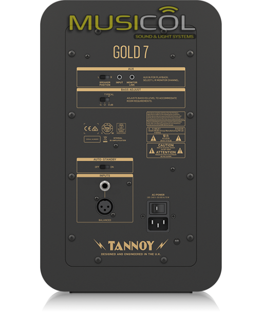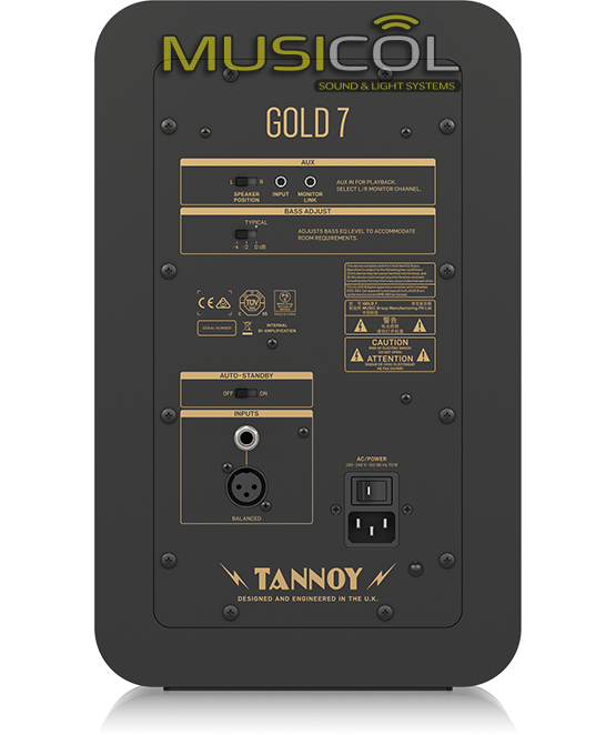 מוניטור אולפני GOLD 7 מבית TANNOY מוניטור 300W קואקסיאלי הדור הבא של וופר קונצנטרי כפול “6.5 השומר על ביטוי מוזיקלי ודינמיקה יוצאת מן הכלל שבמרכזו טוויטר טיטניום “1 בטכנולוגיית דרייבר האגדית Tannoy Dual Concentric מספקת קוהרנטיות פאזה מובילה וצליל מקור נקי ומדוייק. תכנון יציאת הבס רפלקס הקדמי מאפשר מיקום קרוב לקיר ומבטיח ביצועים מיטביים בתדרים נמוכים.