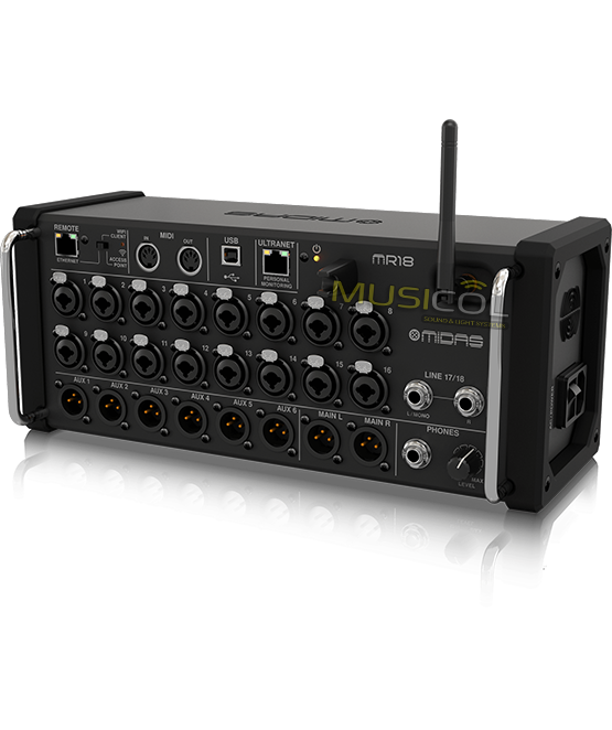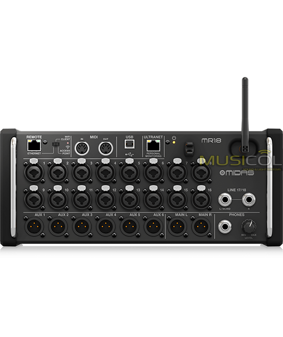 ה-MR18 הוא מיקסר דיגיטלי בעל 18 כניסות הפועל באמצעות Wi-Fi לשליטה ממכשירי iPad, טאבלטים Android, טלפונים ניידים ומחשבי PC ו-Mac – כאשר כל פלטפורמה כוללת אפליקצייה שתוכנתה במיוחד עבורה. המיקסר כולל 16 ערוצים בעלי קדם-מגברים (Preamps) מבית MIDAS המאפשרים חיבור מיקרופונים וכלי נגינה. 2 ערוצים נוספים בעלי כניסת Line מתאימים למקורות כמו קלידים, מחשבים או נגנים שונים. כל אחד מהערוצים כולל פונקציית Low Cut, איקוולייזר פרמטרי של 4 תחומים, Gate ו-Compressor, כולל 6 יציאות Auxilary שכוללות איקולייזר מובנה עם 31 תחומי תדרים על כל אחת מהן. למיקסר 4 מולטי אפקטים סטריאופוניים עם מאגר פנימי של מודלים וירטואליים- קומפרסורים, Delay, Reverb, Chorus ועוד.