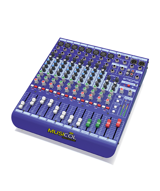 למיקסר 8 כניסות מיקרופון אן LINE לחיבור מקורות מוסיקה או כלי נגינה כמו כן חיבור INSERT, כמובן 2 כניסות סטריאו LINE לחיבור מקור מוסיקה או כלי נגינה, אקולייזר מלא (FULL BAND) שאומר חיתוך נמוכים BASS בתדר 80HZ, חיתוך תדר מיד עם בורר תדר בתחום של 150HZ ועד 3.5KHZ, חיתוך תדר גבוהים HI בתדר 12KHZ לכל ערוץ , לחצני השתקה MUTE לכל ערוץ, לחצן PFL לבחירת מקור לשמע לאוזניות, כפתור פנטום 48+ השולח מתח עבור מיקרופוני קונדנסר, 2 יציאות למוניטור AUX שניתן לבחור PRE OR POST, בכלל המיקסר סליידים 60 מ”מ שנבנו במיוחד למיקסר זה לספק למשתמש שליטה מדהימה בעוצמות. בקיצור חלום שמתגשם למביני העניין