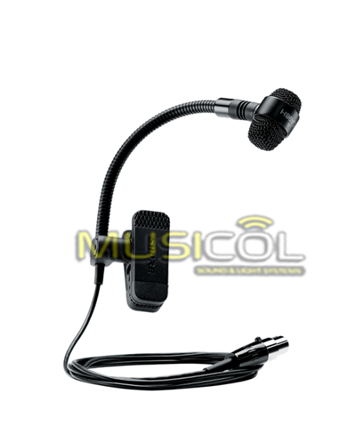 מיקרופון SHURE לכלי נשיפה קונדנסר חד כיווני קטן שאינו בולט קל משקל, בולם בעזועים להפחתת רעשי רקע ותנודות הכלי, עם זרוע גמישה ומתפס חזק ולאבטוח עם תנועה סיבובית להתאמה נוחה וקלה של המיקרופון על כלי הנגינה, מגיע עם חיבור MINI XLR וכבל 1.6 מטר המתאים לסטים של SHURE. קפסולת המיקרופון מספקת צליל חם, טבעי וברור עם תחום תדרים רחב מ-50HZ-20KHZ וטווח דינמי גבוה . משקלו 75 גרם