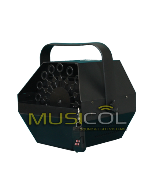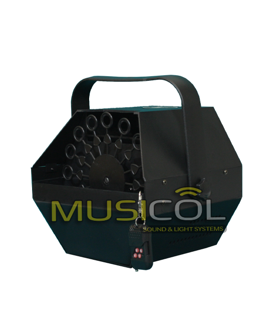 מכונת בועות סבון בעוצמה של 25W, מנוע 25RPM ומפוח לפיזור הבועות למרחק של כ- 2 מטר, מיכל אמבטיה 1.2 ליטר לנוזל. מפסק הפעלה וכיבוי מקומי וכן שלט אלחוטי.