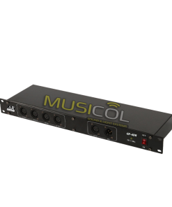 מפצל, מגבר לתקשורת DMX512. המפצל שמגיע עם כניסת DMX ו -4 יציאות DMX ופועל כמפצל ומגבר להגברת אות שידור DMX באמצעות ספק כוח המופעל ע”י שנאי . כניסה ויציאות במחבר 3 פין XLR. מתאים לשימוש פנימי וניתן להתקנה בארון תקשורת “19. פועל על חשמל 220V, מידות 530*180*100 מ”מ ושוקל 1.8 ק”ג