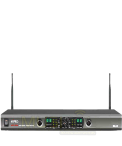 מקלט מקצועי כפול MIPRO במארז מתכת למיקרופונים אלחוטיים 102 תדרים UHF מתחלפים וטווח שידור גדול, ניתן להרכבה בארון “19 באמצעות אוזניים. מצוייד במסך LED, סורק תדרים נקיים מרעש ומערכת סנכרון ACT בין המקלט למיקרופונים.