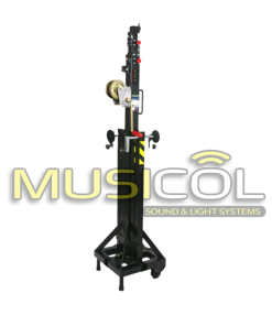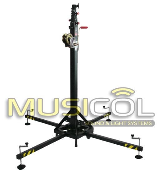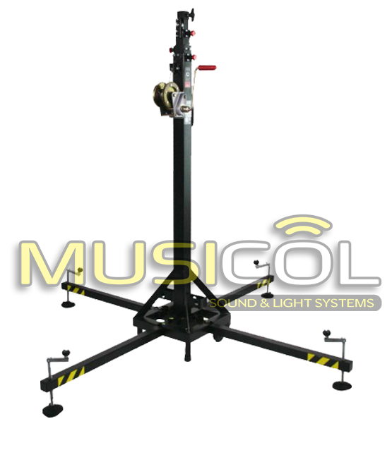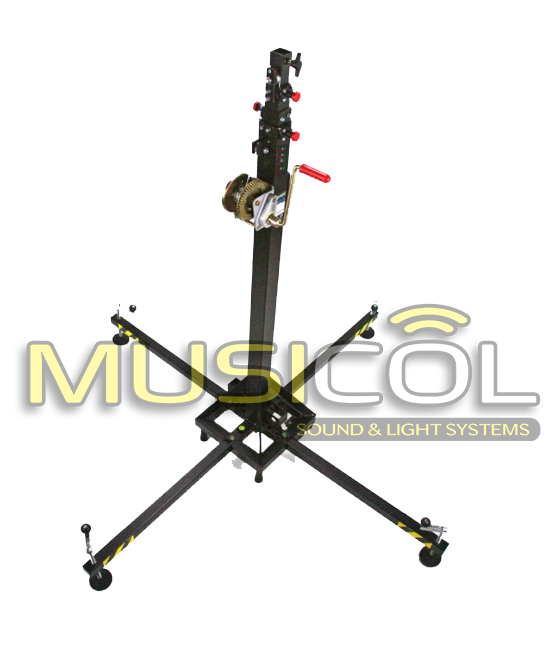 סטנד מנואלה טלסקופי העשוי מפלדה, רגליים מתקפלות שכוללות מערכת נעילה אוטומטית ומייצבים. מתאים לתאורה והגברה