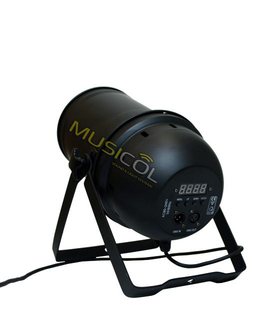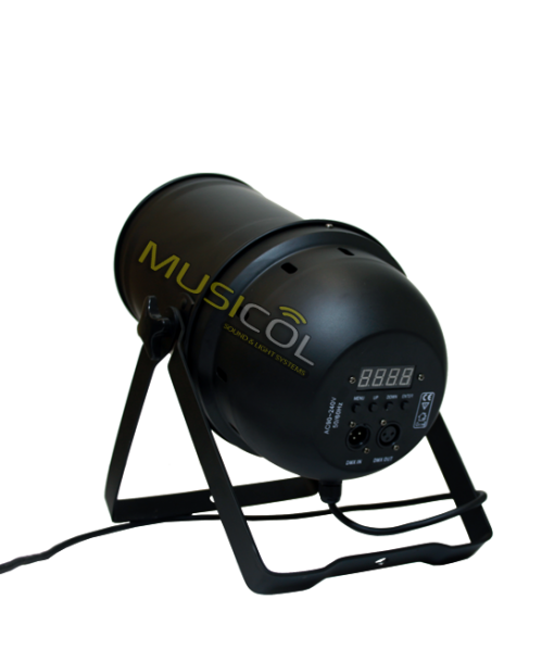 הפנס שבנוי מגוף מאלומניום PAR64 עם נורת לד לבן חם 3200K בטכנולוגיית COB עם עדשה לריכוז עוצמת האלומה. לפנס זום אלקטרוני לשינוי זוית הפתיחה מ 10 מעלות ועד 60 מעלות. דימר לינארי מדוייק 0-100% (ללא ריצודים), מסך LCD ולחצני הניווט למעבר בין פונקציות התפריטים. חיבור DMX עם בחירת מספר ערוצים 3 או 7. 2 זרועות הפנס המתכווננות לתליה או העמדה על הרצפה. פועל במתח חשמל 220V.