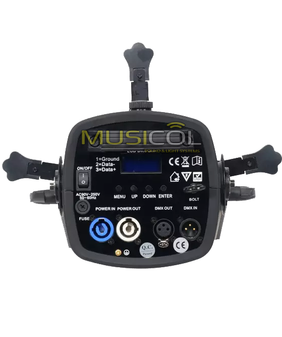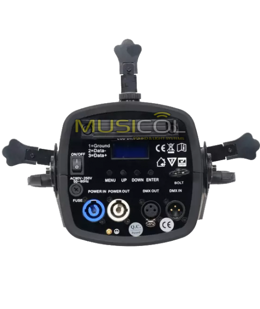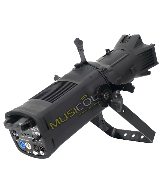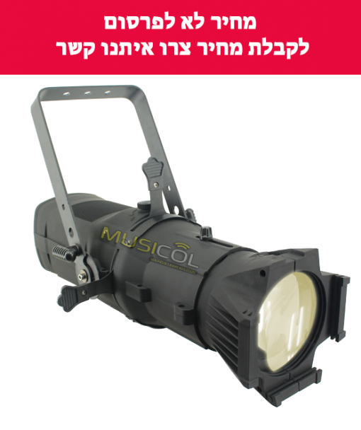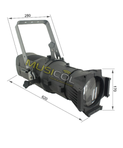 פנס ליקו LED PROFILE SPOT בהספק של 200W נורת לד תוצרת EDISON גוון אור לבן קר עם עדשה 36 מעלות ( הניתן להחלפה ב- 19 ,26 מעלות), 90CRI עם 4 תריסים מתכווננים ידנית, תושבת להוספת גובו, מופעל באמצעות DMX ב-3 ערוצים וכולל דימר לינארי מדוייק 0-100%, מסך תצוגה LCD ולחצני ניווט.