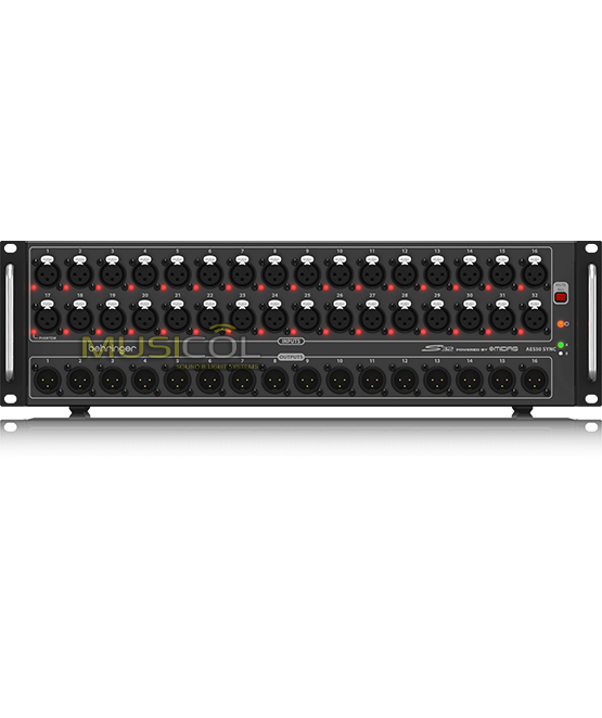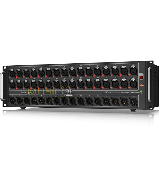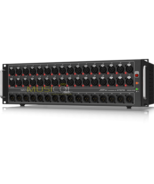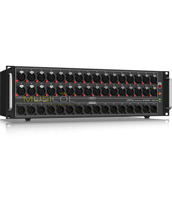 ה- S32 הינו קופסאת במה עם 32 כניסות מיקרופון עם קדם מגבר MIDAS בחיבור XLR ו-16 יציאות בחיבור XLR מאוזנות. מתחבר בקלות למיקסר בעזרת כבל Ethernet CAT5e/6/7 באורך של עד 100 מטר להזרמת אודיו ושליטה מלאה על הקופסה בפרוטוקול AES50. מסך דיגיטלי מובנה בעל תפריטים ואפשרות שליטה עצמית בקופסה (גם אם מנתקים את המיקסר קופסאת הבמה ממשיכה לעבוד). 2 יציאות AES-3, לחיבור ישיר של בקרי מערכת PA עם כניסות דיגיטליות, יציאות ADAT כפולות המספקות פלט דיגיטלי בן 16 ערוצים בשני מחברי TOSLINK אופטיים. קישוריות ULTRANET למערכת הניטור האישית P16 של Behringer ליישומי מוניטור IN-EAR, ממשק MIDI. אפשרות לחיבור קופסאות במה נוספת במקביל, עבודה בתדר דגימה של 44.1/48kHz. חיבור USB לצורך עדכוני תוכנה. מתאים לכלל המיקסרים הדיגיטליים של BEHRINGER.