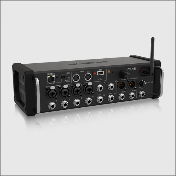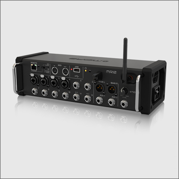 Over the past few years, the world of recording and performance audio has experienced a major paradigm shift, one that requires musicians and performers alike to take advantage of emerging technologies that offer flexibility and ease of use. The MR12 is an 12-input portable mixer housed in a sturdy stage box design for use with iPad and Android tablets. It is ideally suited for both live and studio applications thanks to 4 award-winning MIDAS PRO mic preamps, integrated Wifi module for wireless control, MIDI I/O – and a USB connector for storing files or the recording and playback of uncompressed stereo WAV files. Free iOS, Android and PC apps enable you to move about the venue or the tracking room and manipulate all the parameters of your mix, and the performers have the freedom to dial-in a shared monitor mix. Advanced engineering and meticulous design combine to deliver professional-grade performance and impressive affordability – the MR12.
