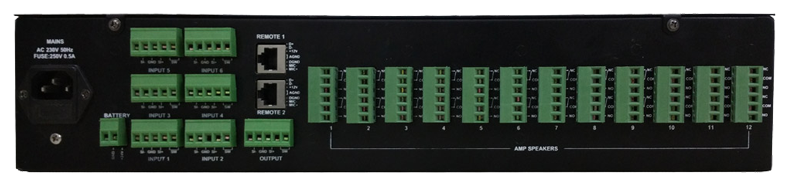 יחידת המיתוג (SRU-12) מאפשרת מיתוג מלא (N.O / N.C) של 12 אזורים בין מוזיקה לדיבור.