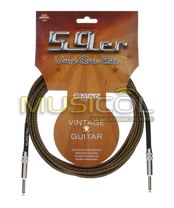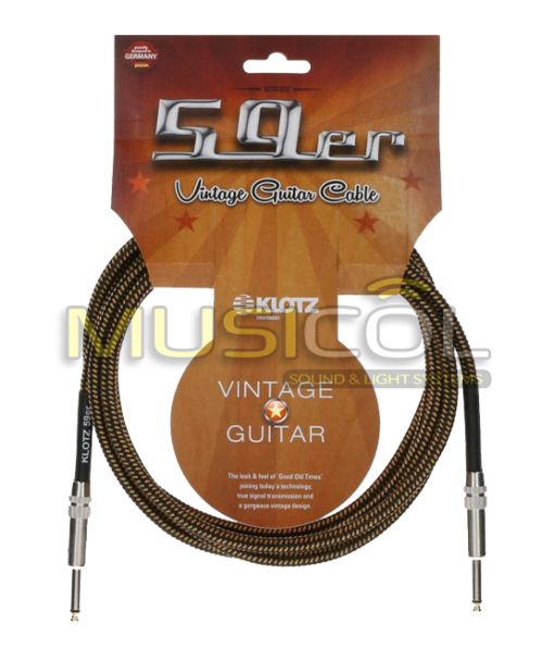 כבל גיטרה וינטג ’59’ באורך 3 מטרהוא השילוב האידיאלי של עיצוב וינטג ‘עם טכנולוגיה עדכנית באיכות KLOTZ. מעטפת הטקסטיל מזכיר את הימים הטובים תוך הגנה יעילה. הכבל כולל קיבול נמוך לצליל נהדר בתוספת עיצוב מחוספס לאורך זמן עם אלמנטים חכמים כגון שרוולי התכווצות נגד ניתוקים. לכבל 2 ליבות נחושת וסיכוך ספירלה נחושת, מצופה PVC ומעטפת בד והינו גמיש מאד. מחברי 6.3 מ”מ PL ישירים מצופים זהב ושרוול ניקל