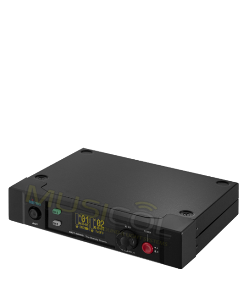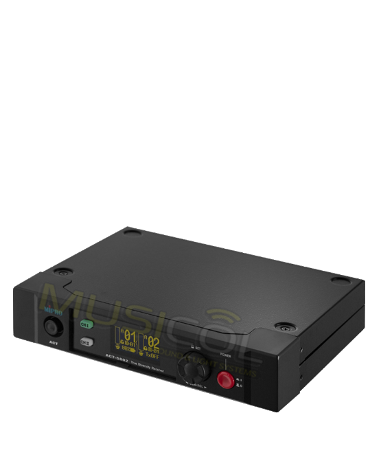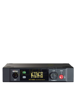 ACT-5802 הסדרה החדשה לשנת 2020 הוא מקלט כפול ב- 5.8 ג’יגה הרץ במארז מתכת בגודל חצי “19 עם אוזניים להתאמתו למארז “19, מצוייד במסך OLED גרפי המספק זוית צפיה רחבה, מעגל דיגיטלי לייצוב תדר, הסט הכולל 128 תדרים מתחלפים ללא הפרעות קליטה ומחולקים ל-3 קבוצות של תדרים A,B1,B2 בכל קבוצה 12 ערוצי פריסטים כל פריסט ניתן לשנות לאחד מ-64 התדרים, כך שאם משתמשים במספר גדול של מיקרופונים נגדיר כל סט לתדרים אחרים למנוע הפרעות אחד של השני, קבוצות A & B לא יכולים לעבוד במקביל. A נועד לשימוש למרחקים ארוכים יותר בין המקלט למיקרופון אך כאשר משתמשים במספר גדול של מיקרופונים מומלץ ע”י היצרן לעבוד בקבוצות -B1,B2 ולקרב בין המקלט למיקרופון כי טווח הקליטה קצר יותר. מרבית המיקרופונים האלחוטיים הקיימים בשוק עובדים בטכנולוגית 2.4GHz ולכן מיקרופונים אלו לא יכולים להפריע בשידור וקליטה של סט זה, לציין כי לסט זה אנטנות פנימיות ולא חיצוניות כפי שאנחנו רגילים לראות. ACT לסנכרון תדרים בין המשדר למיקרופון. במסך מוצגים הקבוצות והפריסטים שבחרנו A / B1 / B2 , 1-12, מצב הסוללה לכל מיקרופון. בורר תוכניות בכפתור גלגל שממש נוח לשימוש. בגב המקלט 2 ציאות לכל ערוץ בחיבור XLR או PL63 וניתן באמצעות בורר לאחד בין הערוצים ולצאת ביציאה אחת לשני המיקרופונים. בסט זה ניתן לבחור בין מיקרופון ידני, משדר כיס – מדונה או נק מייק (לא כלול במחיר)