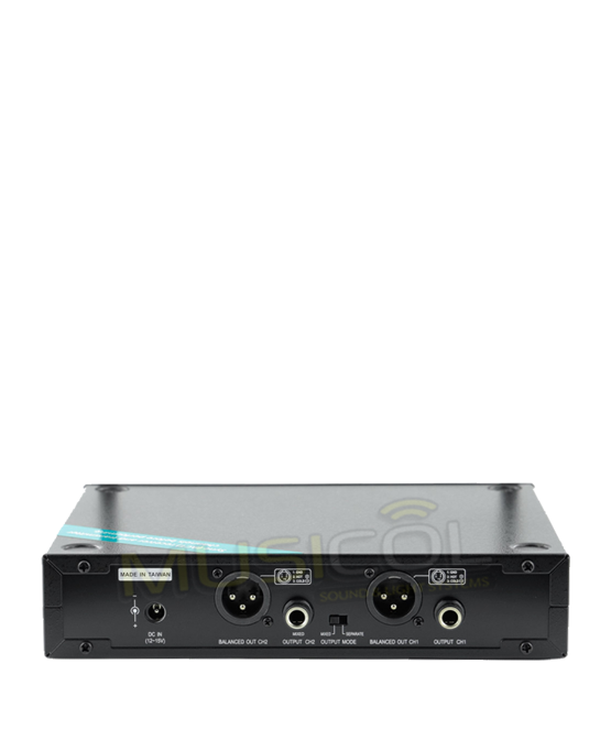 סט אלחוטי בכפול הפועל בשיטת שידור 5.8GHz עם 64 תדרים משתנים ללא הפרעות שידור טווח קליטה גדול, מארז מתכת בגודל חצי “19 עם אוזניים להתאמה למארז “19. ניתן לבחור בין מיקרופון ידני אלחוטי או משדר כיס למדונה או מיקרופון דש